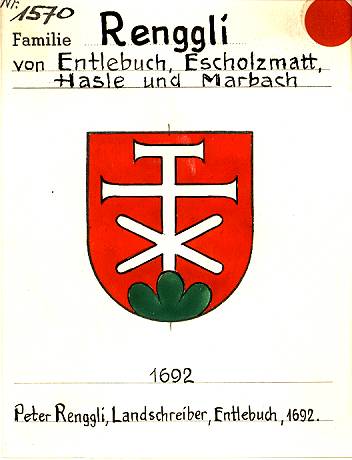 Ab 1692 erscheint der Landschreiber Peter Renggli in der heutigen Schreibweise und erstmals mit dem Wappen (siehe unten) der Renggli zu Entlebuch (Rengg), Escholzmatt, Hasle und Marbach. Informationen zur Namensdefinition und Flurbezeichnung siehe ebenso unten.